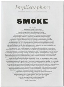 IMPLICASPHERE EXHIBITION: Smoke seems to be vanishing from our fireplaces and fingertips. While it is rapidly increasing in other parts of the world, in London soon there may be nothing left but its symbolic quality. Smoke is going up in